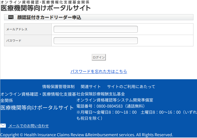 ポータルサイトに登録したメールアドレスと設定したパスワードでログインして申し込み画面に進みます。